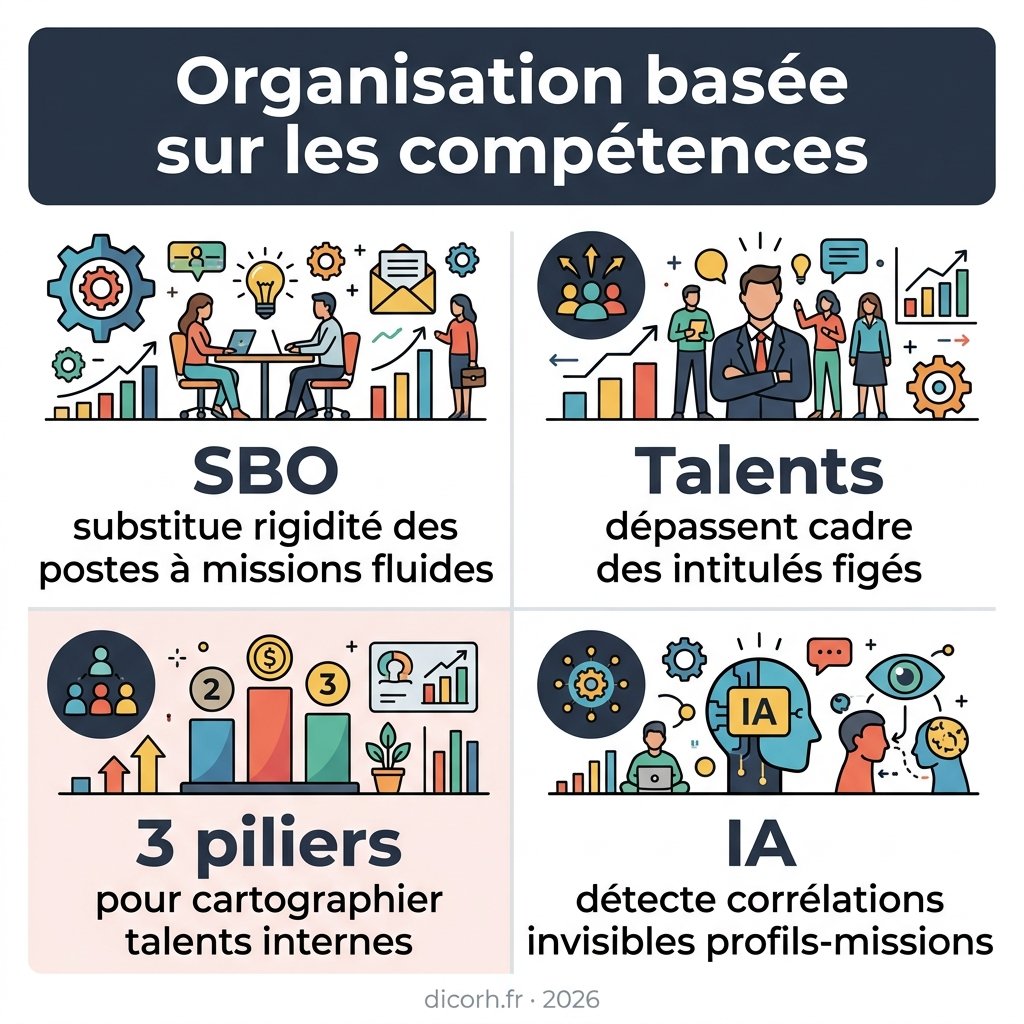 Ce qu’il faut retenir : l’organisation par compétences (SBO) substitue la rigidité des intitulés de poste à une gestion fluide par missions. Ce changement de paradigme maximise le potentiel humain et l’agilité stratégique en valorisant le savoir-faire réel. Cette approche objective favorise l’inclusion en gommant les barrières du diplôme, tout en offrant une flexibilité opérationnelle indispensable face aux imprévus du marché.
