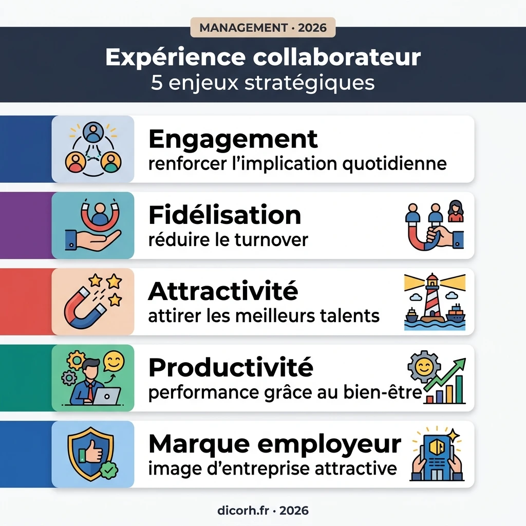 L’expérience collaborateur est une notion qui fait référence à la somme des interactions d’un salarié avec son entreprise, de la phase de recrutement à son éventuel départ. Ce concept s’est développé en parallèle de celui de l’expérience client, qui vise à créer une relation fluide et personnalisée entre une entreprise et ses clients. L’objectif de l’expérience collaborateur est de maîtriser chaque étape de la relation entre un salarié et son entreprise, en prenant en compte ses besoins et attentes à chaque étape de son parcours professionnel.